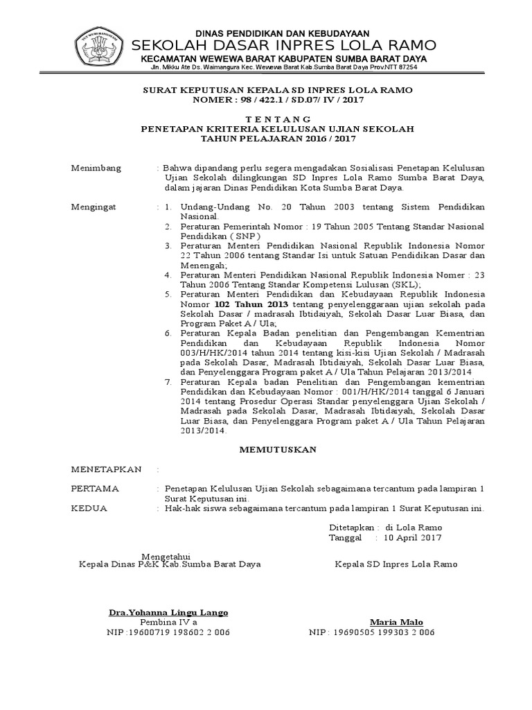 Contoh Surat Keputusan Kelulusan Sd / Contoh Sk Kelulusan Siswa Ra Tk Tahun 2019 2020 Format File - Doc surat keterangan mengajar nomor furqoni ahmad academia edu.
